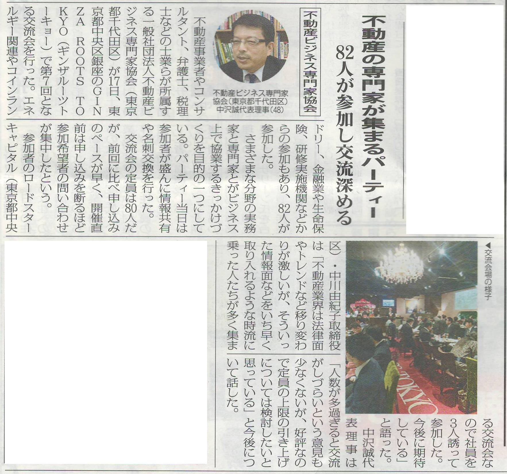 2017年11月17日、銀座にて第7回不動産ビジネス交流会を開催いたしました。 不動産業者、士業、その他約80名の方々にご参加いただき大変な盛況となりました。 恒例となりました協賛会社様のPRおよび協賛品をかけたジャンケ… 続きを読む »