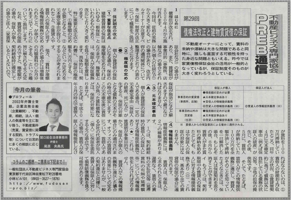 ビルオーナー、不動産会社向けの業界紙である「週刊ビル経営」にて、当協会登録専門家によるコラムを毎月連載させて頂いております。 今回は当協会登録専門家で弁護士の尾原央典氏が「債権法改正と建物賃貸借の保証」と題したコラムを執… 続きを読む »