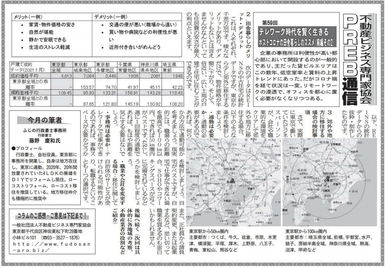 ビルオーナー、不動産会社向けの業界紙である「週刊ビル経営」にて、当協会登録専門家によるコラムを毎月連載させて頂いております。 今回は当協会登録専門家で行政書士の藤野慶和氏が「テレワーク時代を賢く生きるポストコロナの田舎暮… 続きを読む »