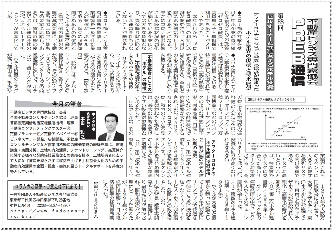 ビルオーナー、不動産会社向けの業界紙である「週刊ビル経営」にて、当協会登録専門家によるコラムを毎月連載させて頂いております。 今回は当協会登録専門家でホンダ商事株式会社代表取締役の本田和之氏が「ビルオーナーと共に考えるホ… 続きを読む »