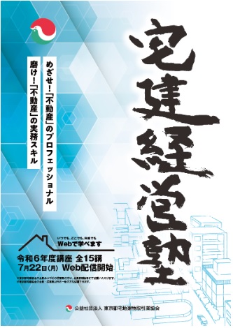 公益社団法人東京都宅地建物取引業協会主催の「宅建経営塾」(オンデマンド配信)に当協会登録専門家が登壇いたします。 「東京都宅建協会主催の宅建経営塾は、平成16年に開講され、多くの受講者が業界で活躍中です。宅地建物取引の基… 続きを読む »