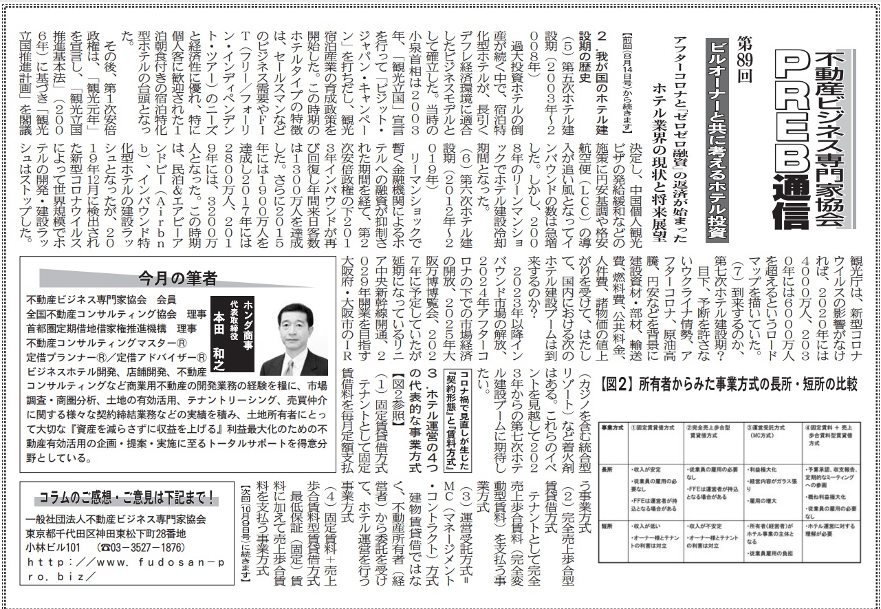 ビルオーナー、不動産会社向けの業界紙である「週刊ビル経営」にて、当協会登録専門家によるコラムを毎月連載させて頂いております。 今回は当協会登録専門家でホンダ商事株式会社代表取締役の本田和之氏が「ビルオーナーと共に考えるホ… 続きを読む »