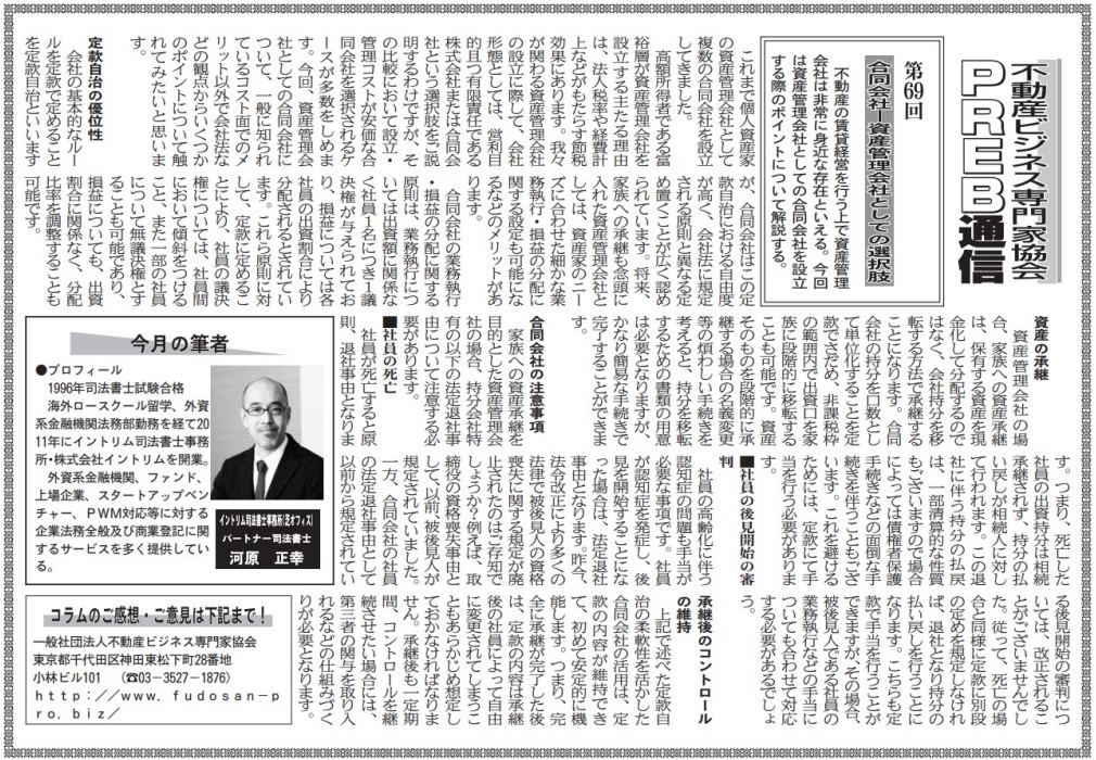 ビルオーナー、不動産会社向けの業界紙である「週刊ビル経営」にて、当協会登録専門家によるコラムを毎月連載させて頂いております。 今回は当協会登録専門家で司法書士の河原正幸氏が「合同会社-資産管理会社としての選択肢」と題した… 続きを読む »