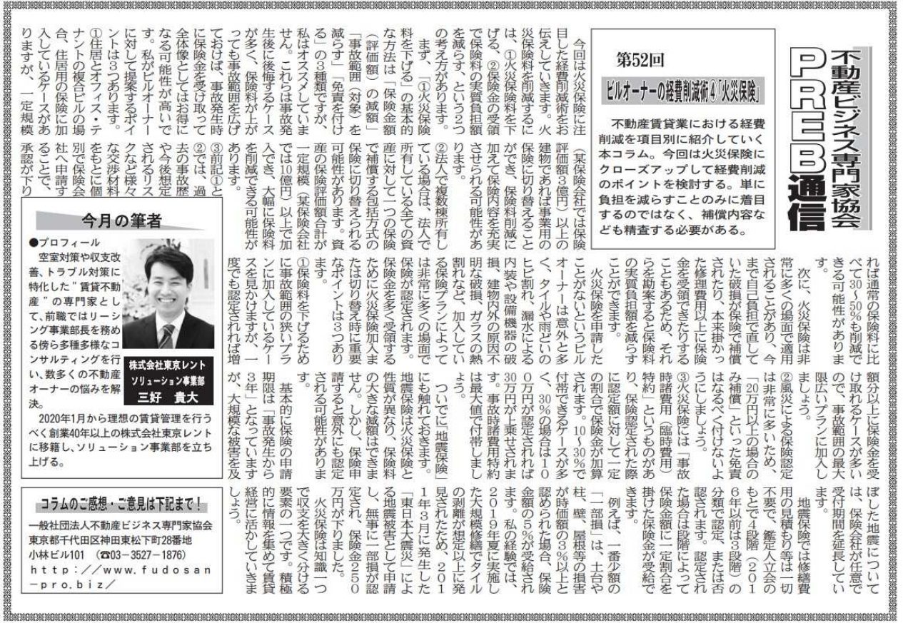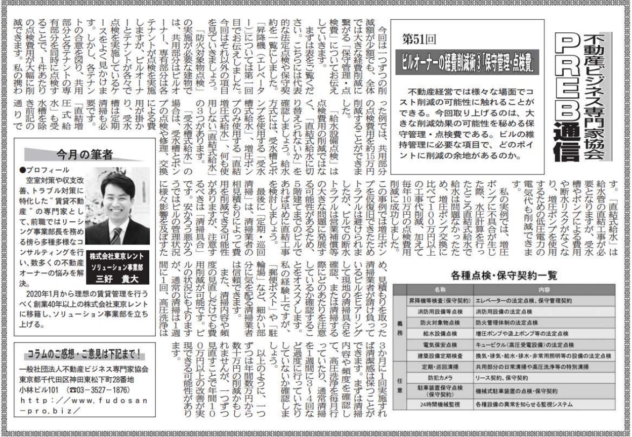 ビルオーナー、不動産会社向けの業界紙である「週刊ビル経営」にて、当協会登録専門家によるコラムを毎月連載させて頂いております。 今回は当協会登録専門家で株式会社東京レントソリューション事業部の三好貴大氏が「ビルオーナーの経… 続きを読む »