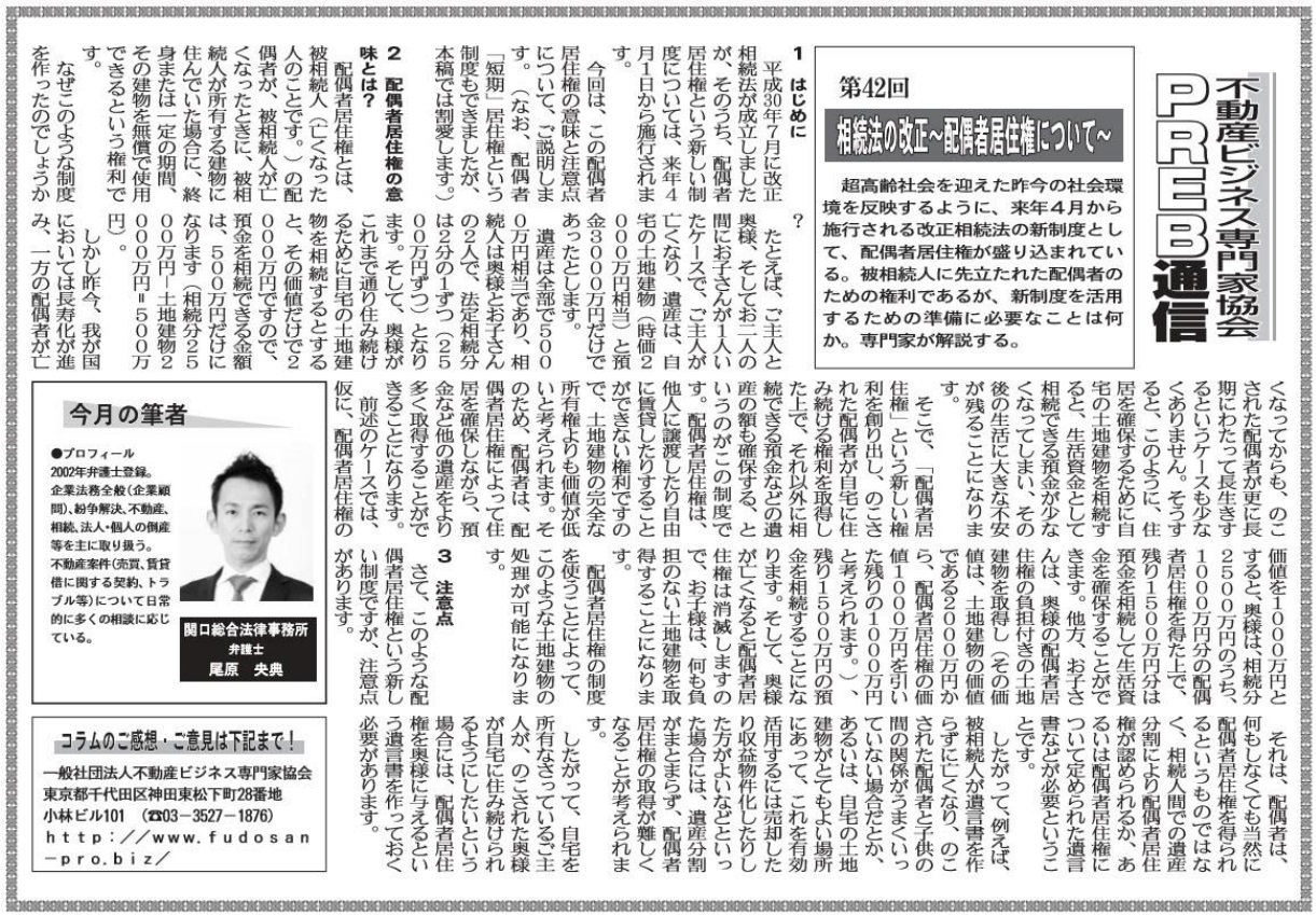 ビルオーナー、不動産会社向けの業界紙である「週刊ビル経営」にて、当協会登録専門家によるコラムを毎月連載させて頂いております。 今回は当協会登録専門家で弁護士の尾原央典氏が「相続法の改正~配偶者居住権について~」と題したコ… 続きを読む »