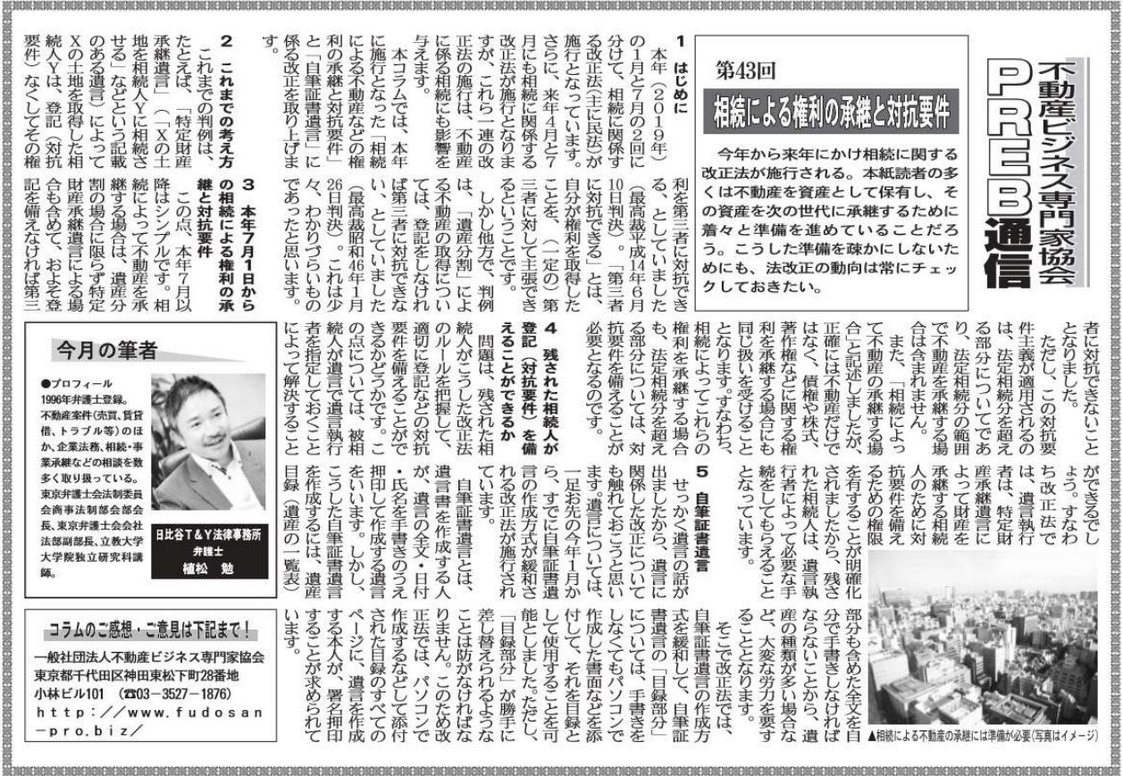 ビルオーナー、不動産会社向けの業界紙である「週刊ビル経営」にて、当協会登録専門家によるコラムを毎月連載させて頂いております。 今回は当協会登録専門家で弁護士の植松勉氏が「相続による権利の承継と対抗要件」と題したコラムを執… 続きを読む »