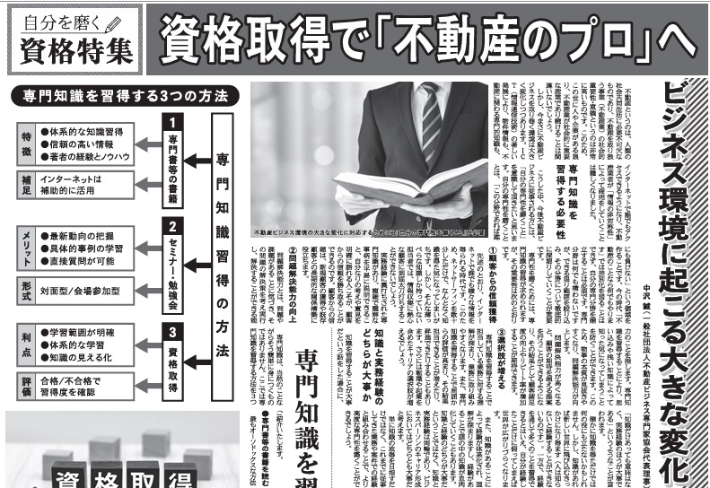 住宅新報2025年2月4日号において、当協会代表理事中沢誠によるコラム「資格取得で『不動産のプロ』へ」が掲載されました。 今後も様々な切り口でコラムを書いてまいりますのでご期待ください。 執筆者紹介 中沢誠 不動産法務サ… 続きを読む »