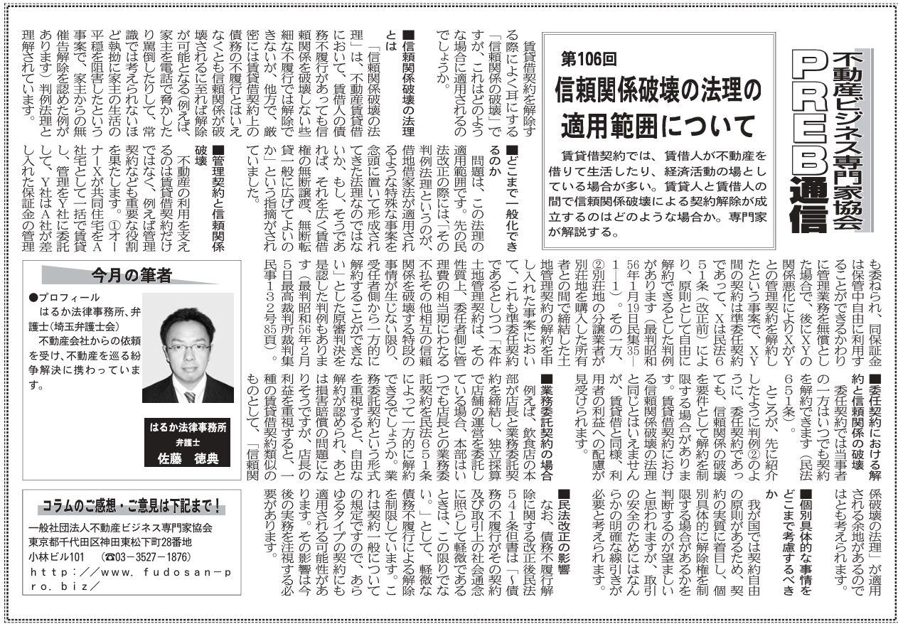 今回は当協会登録専門家で弁護士の佐藤徳典氏が「信頼関係破壊の法理の適用範囲について」と題したコラムを執筆いたしました。 今後も様々な切り口でコラムを書いてまいりますのでご期待ください。 執筆者紹介 佐藤徳典 弁護士はるか… 続きを読む »