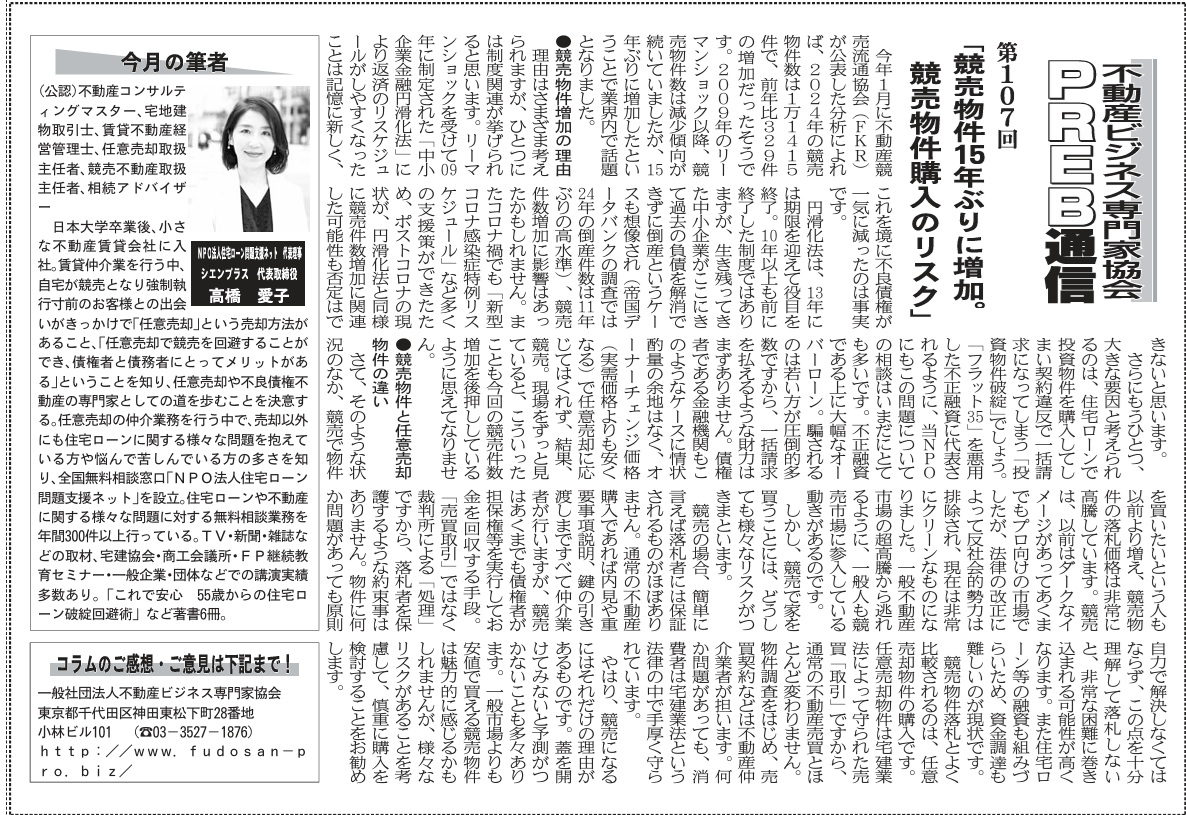 今回は当協会登録専門家でNPO法人住宅ローン問題支援ネット代表理事・株式会社シエンプラス代表取締役の高橋愛子氏が「競売物件15年ぶりに増加。競売物件購入のリスク」と題したコラムを執筆いたしました。 今後も様々な切り口でコ… 続きを読む »