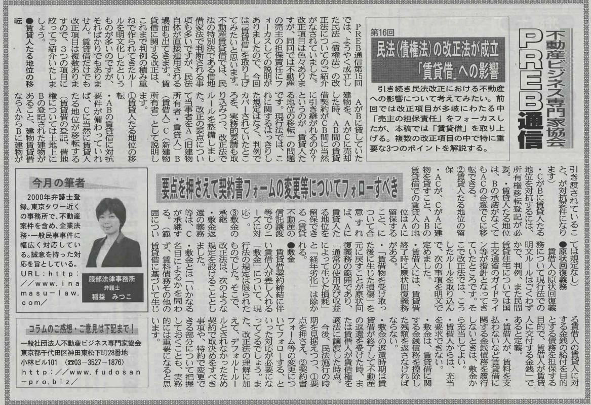 ビルオーナー、不動産会社向けの業界紙である「週刊ビル経営」にて、当協会登録専門家によるコラムを毎月連載させて頂いております。 今回は当協会登録専門家で弁護士の稲益みつこ氏が「民法(債権法)の改正法が成立「賃貸借」への影響… 続きを読む »