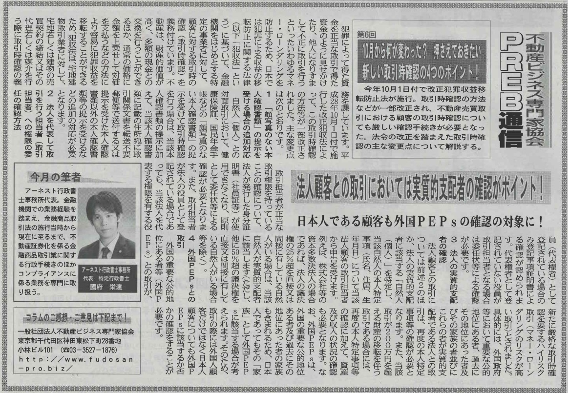 2016年11月22日に開催した第23回月例勉強会は、「10月から何が変わった?新しい取引時確認のポイント」と題し、当協会登録専門家で行政書士の國府栄達氏が登壇いたしました。 概要 2016年10月1日に改正犯罪収益移転… 続きを読む »