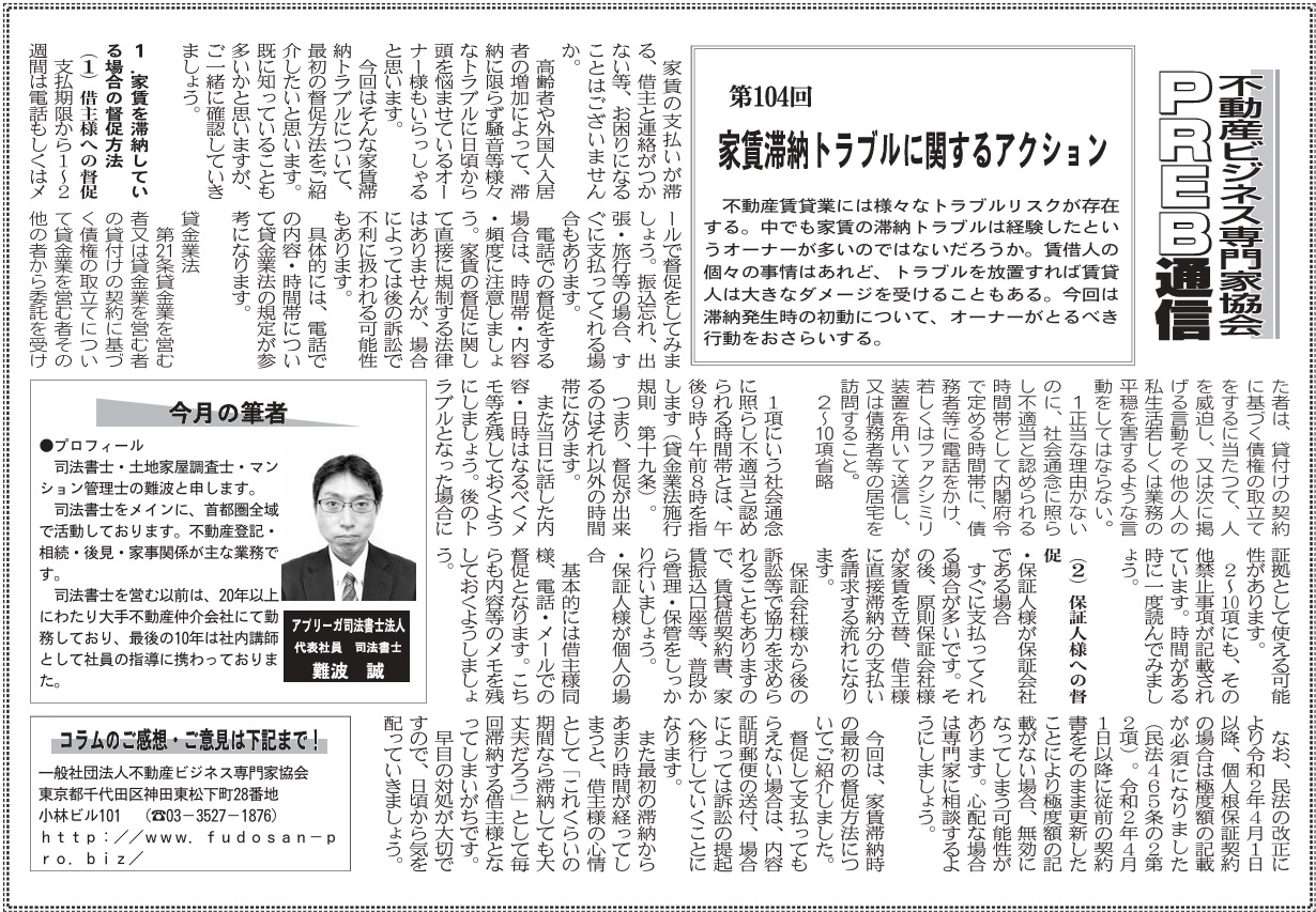今回は当協会登録専門家で司法書士の難波誠氏が「家賃滞納トラブルに関するアクション」と題したコラムを執筆いたしました。 今後も様々な切り口でコラムを書いてまいりますのでご期待ください。 執筆者紹介 難波誠 アプリーガ司法書… 続きを読む »