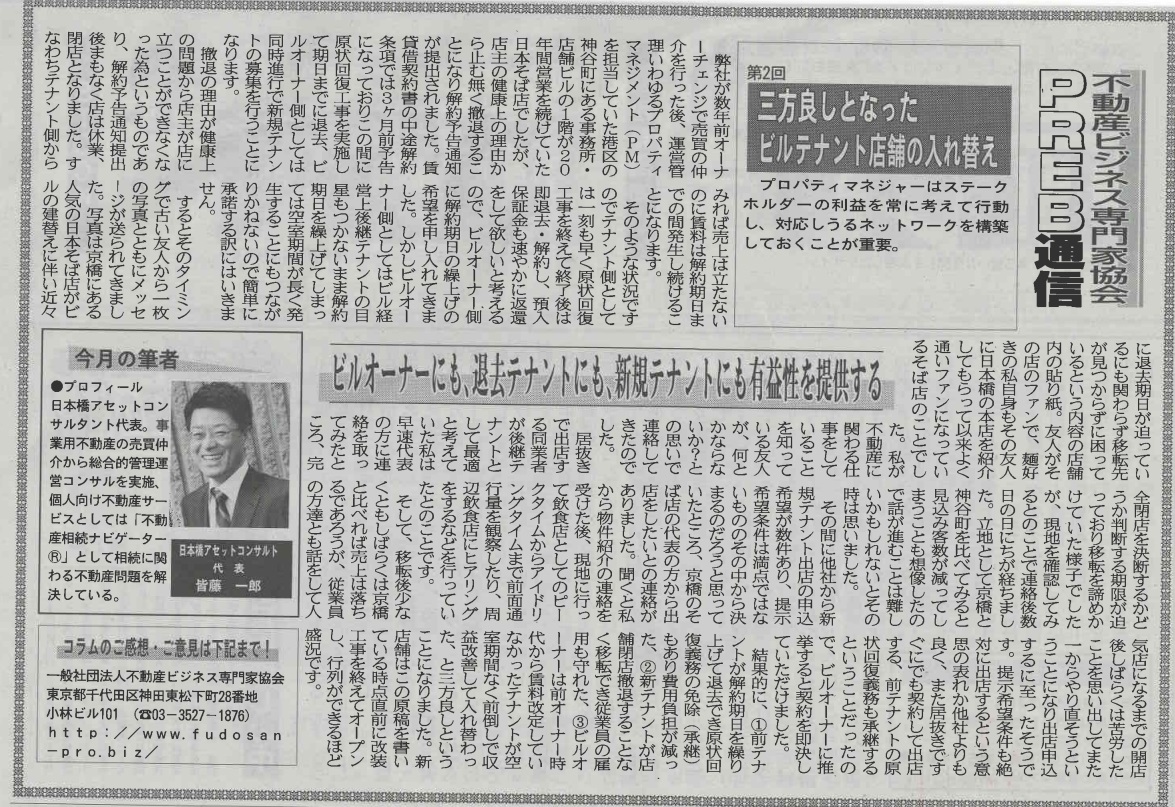ビルオーナー、不動産会社向けの業界紙である「週刊ビル経営」にて、当協会登録専門家によるコラムを毎月連載させて頂いております。 今回は当協会登録専門家で日本橋アセットコンサルタント代表の皆藤一郎氏が「三方良しとなったビルテ… 続きを読む »