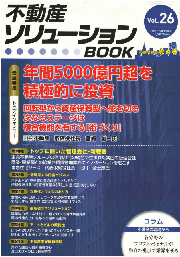 株式会社ビル経営研究所が発行する書籍「不動産ソリューションBOOK VOL26」(2016年6月11日発行)に、当協会登録専門家による座談会記事が掲載されました。 執筆者紹介 皆藤一郎 日本橋アセットコンサルタント代表宅… 続きを読む »