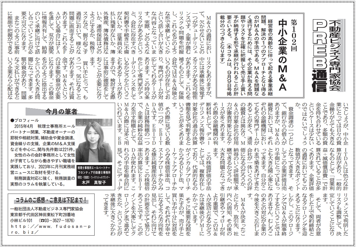 週刊不動産経営2024年10月14日号にコラムが掲載されました